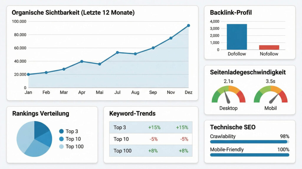 Backlinks sind wie Empfehlungen von Freunden. Je mehr hochwertige Links auf Ihre Website verweisen, desto vertrauenswürdiger erscheint sie den Suchmaschinen. Diese Links sind entscheidend, um Ihre Position in den Suchergebnissen zu verbessern. Denken Sie an Backlinks als digitale Empfehlungen – je mehr Sie haben, desto besser. Tools wie Ahrefs, das über eine Datenbank von über 16,6 Milliarden indexierten Seiten verfügt, helfen Ihnen, diese Links zu identifizieren und zu analysieren. Sie zeigen, welche Seiten auf Sie verlinken, und helfen, neue Linkmöglichkeiten zu entdecken.